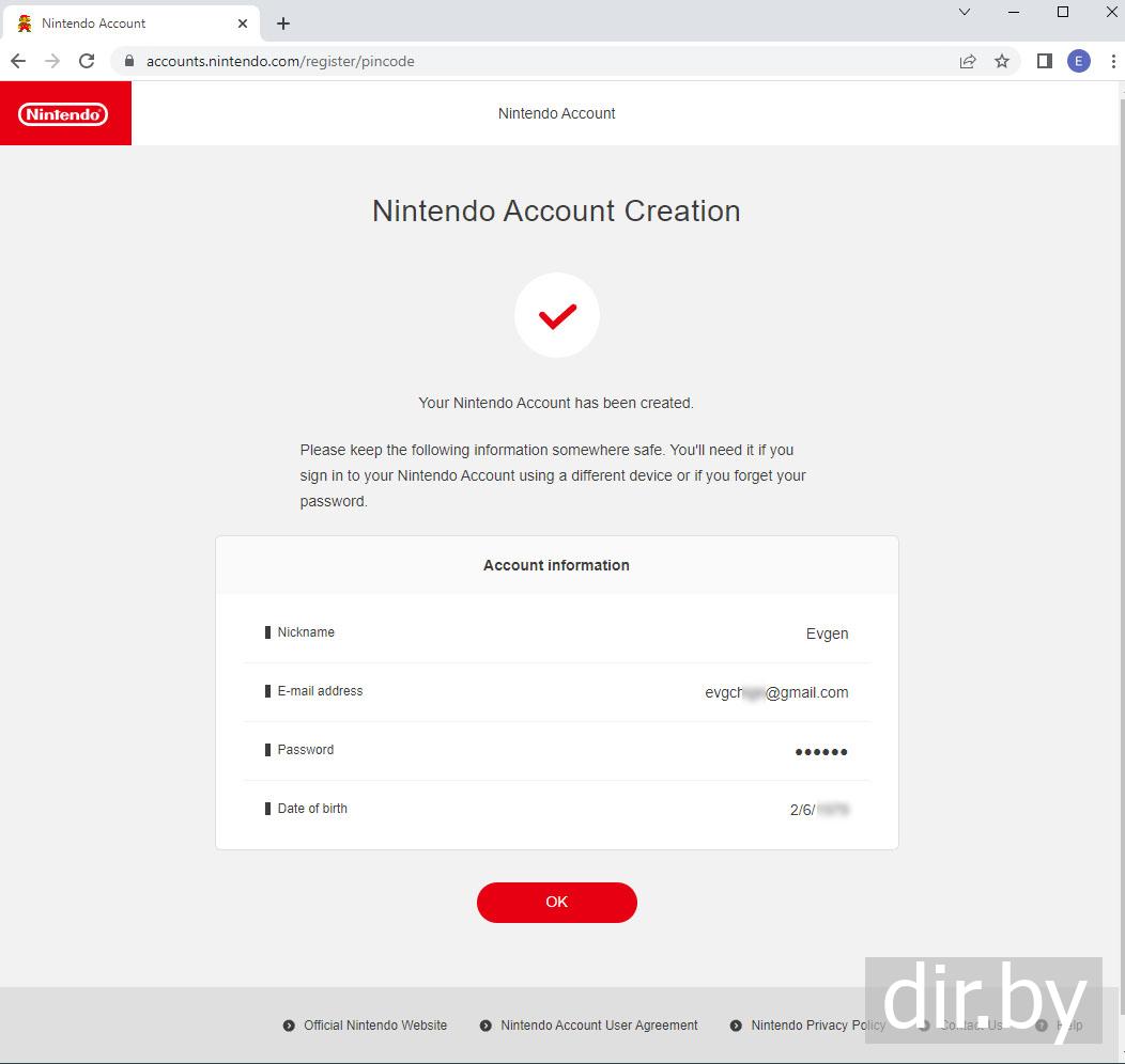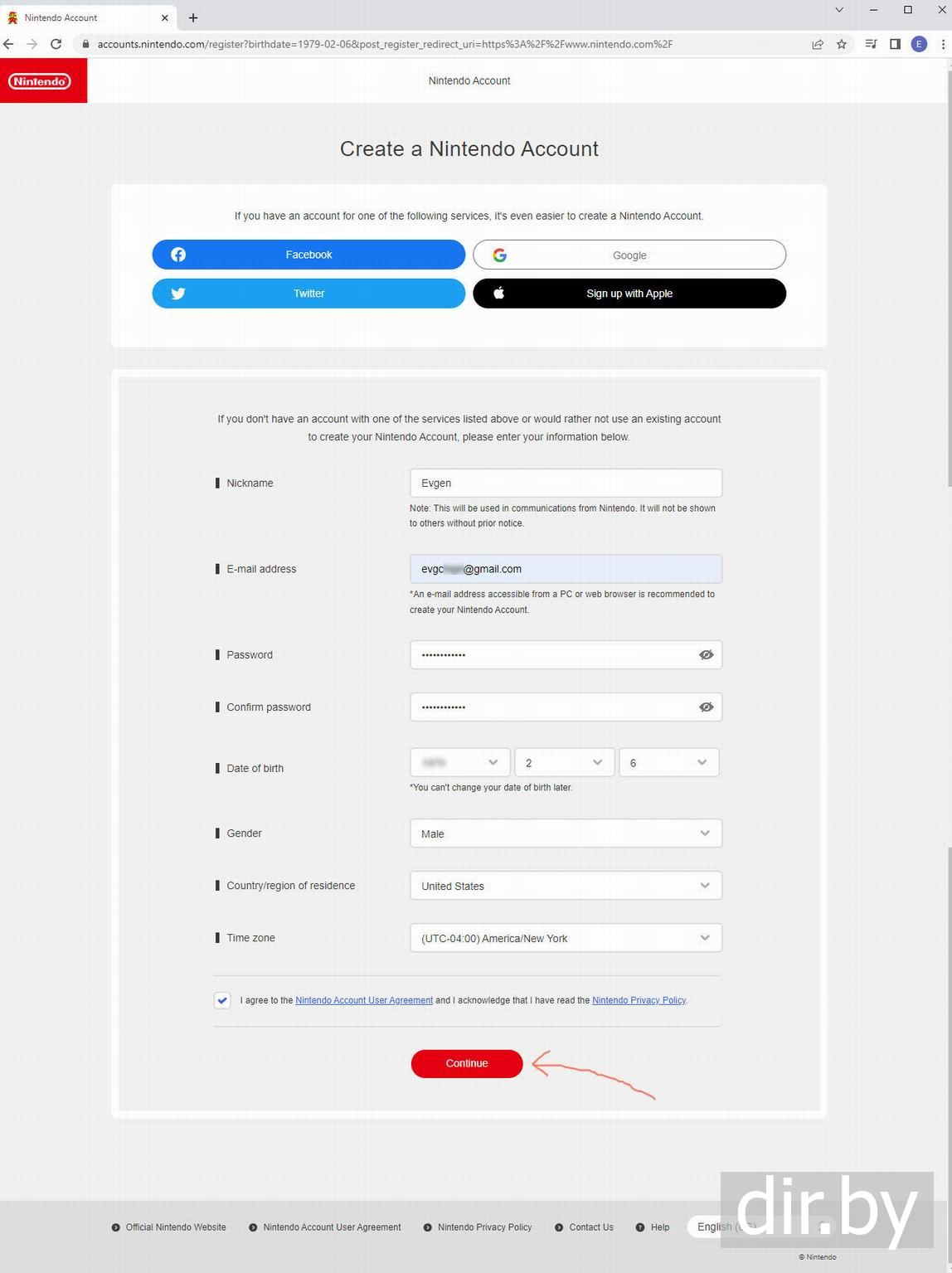 Включаю ноутбук и создаю Nintendo account на сайте https://nintendo.com