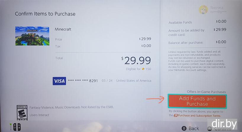 На ноутбуке захожу в Nintendo account (сайт https://nintendo.com ) и добавляю платежную карточку