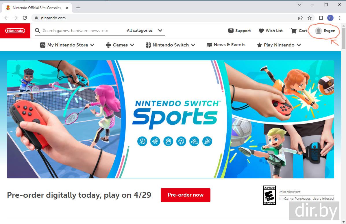 На ноутбуке захожу в Nintendo account (сайт https://nintendo.com ) и меняю страну чтобы платить в euro(€), dollar($), pound(£) при покупке игр для Nintendo Switch