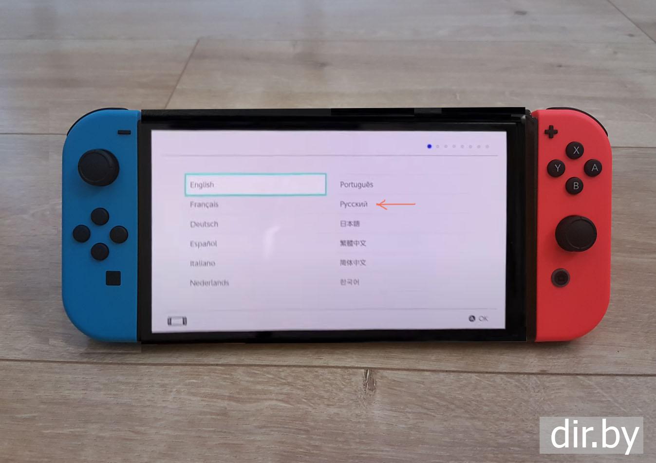 Включаем первый раз приставку Nintendo Switch и выбираем язык