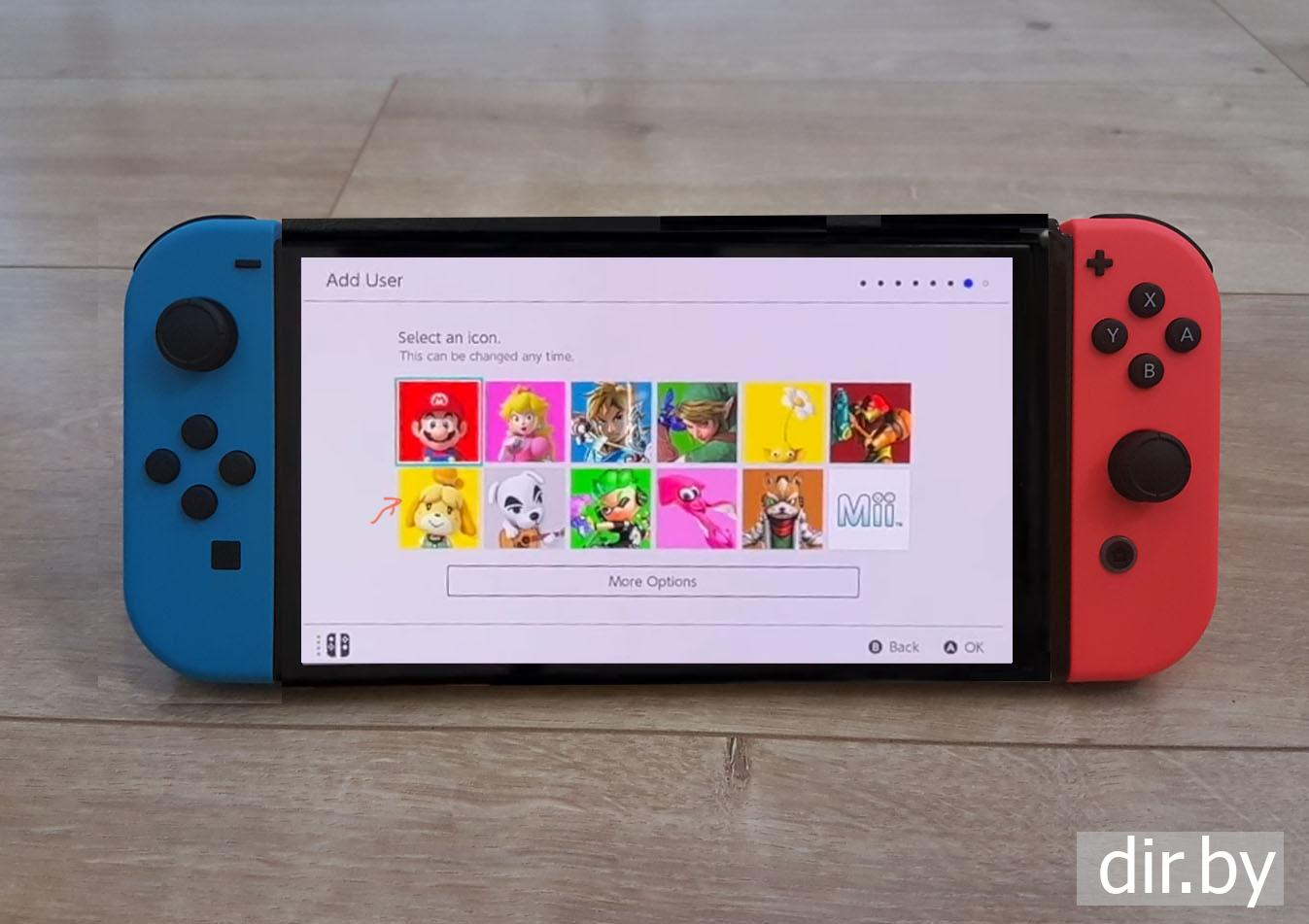 Включаем первый раз приставку Nintendo Switch (подключаем WiFi, пишем свое имя и выбираем иконку)