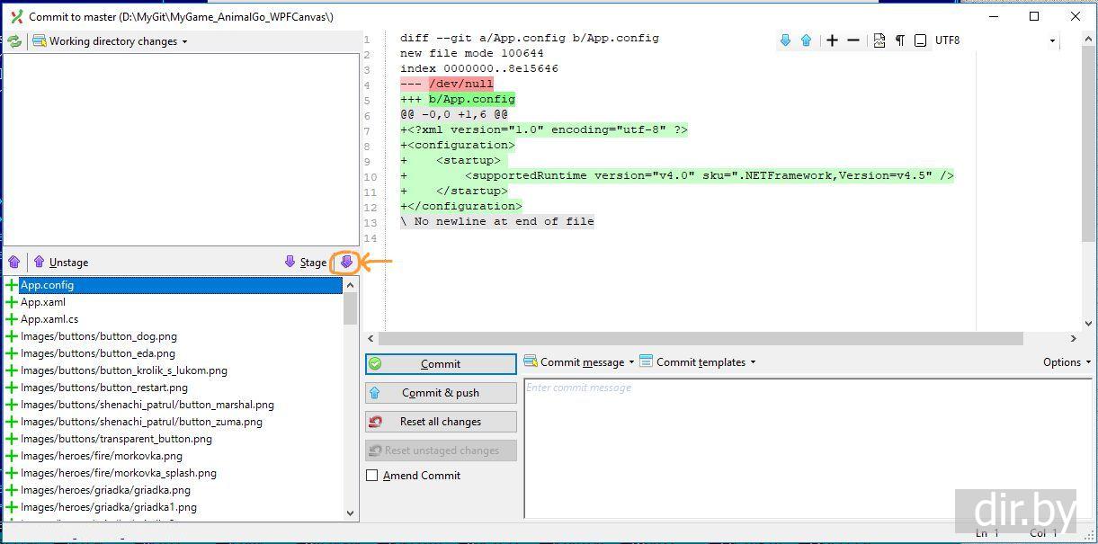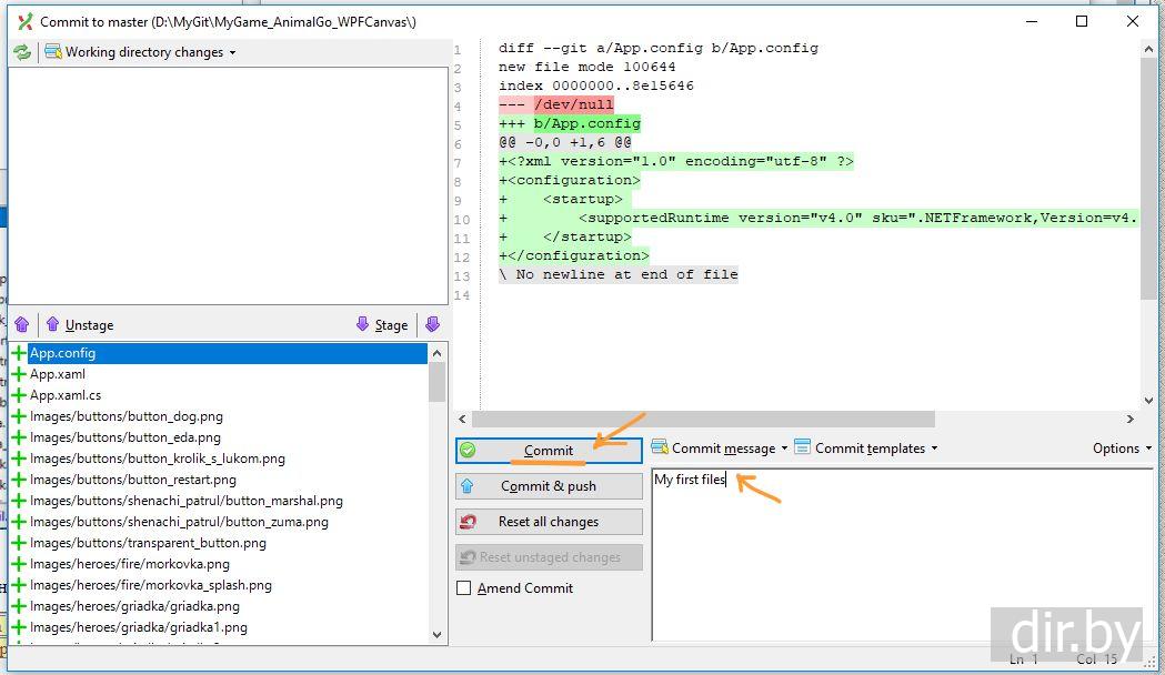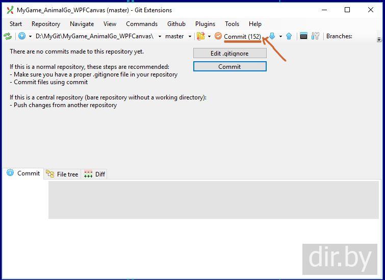 Commit and Push в Git Extensions для Windows