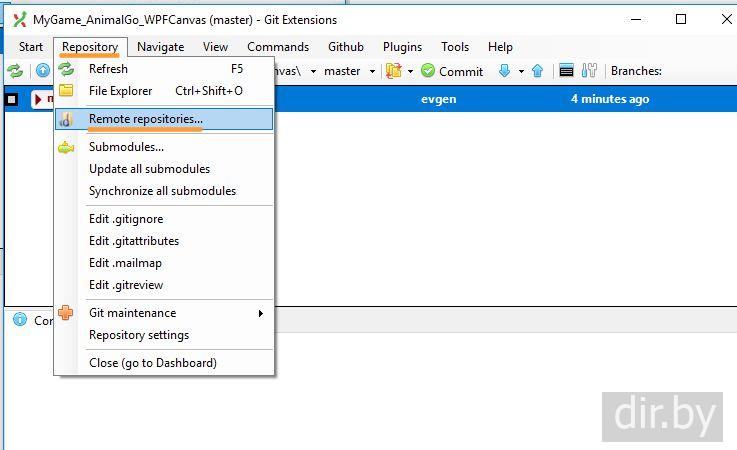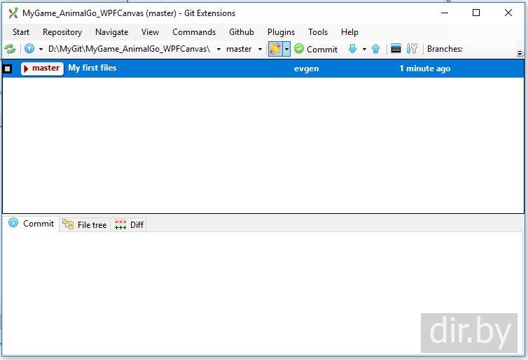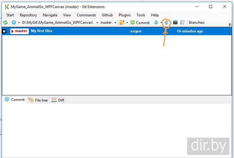 Выложить файлы в нашу ветку (branch). Git Extensions для Windows