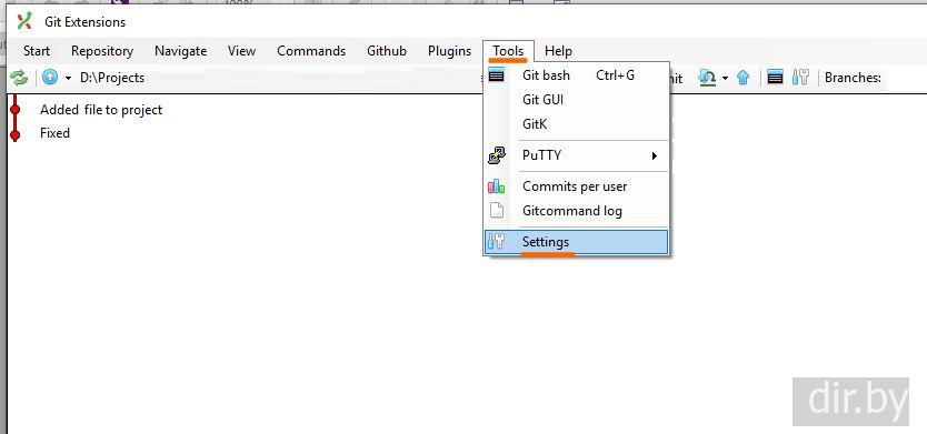 Выложить файлы в нашу ветку (branch). Git Extensions для Windows