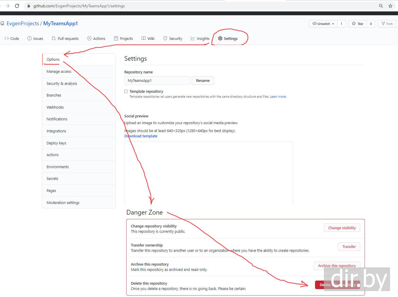 Удаляем репозиторий из GitHub.com