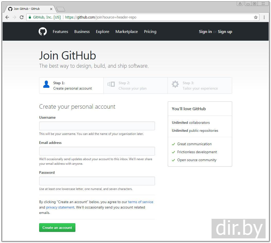Регистрируемся на GitHub.com