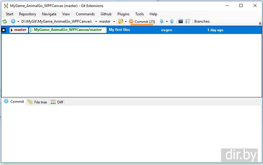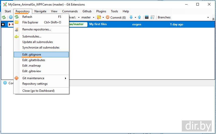 Выложить файлы в нашу ветку (branch). Git Extensions для Windows