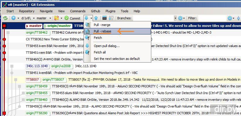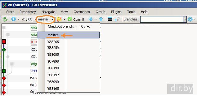 Вариант 2 (используем Rebase, Reset). Выложить нашу ветку (branch) в master ветку. Git Extensions для Windows