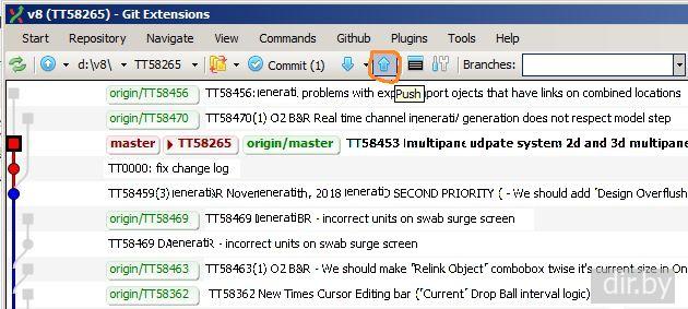 Выложить файлы в нашу ветку (branch). Git Extensions для Windows