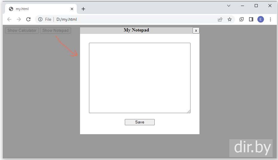 <button onclick='OpenDialog("my-modal2");'>Show Notepad</button>