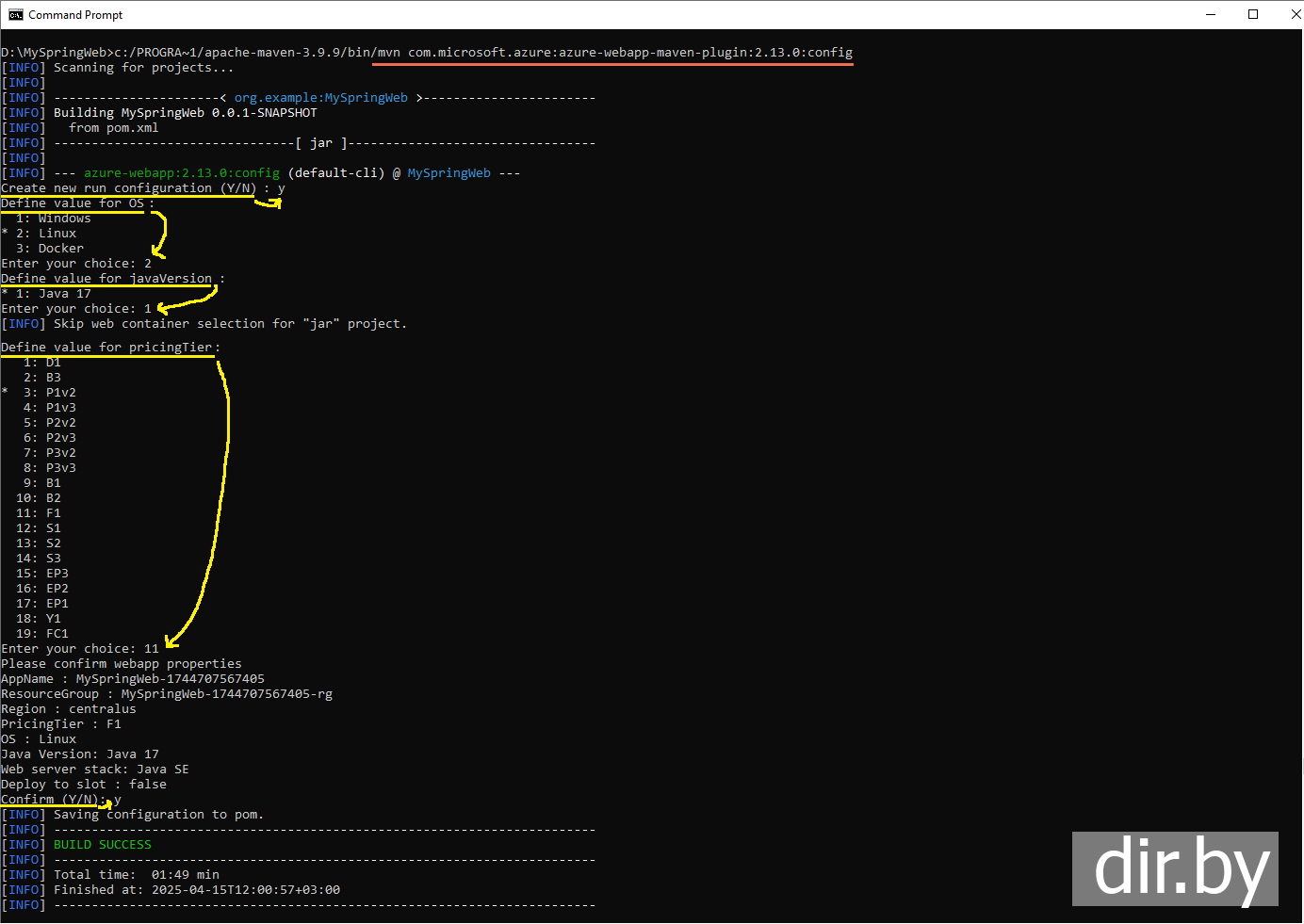 c:/PROGRA~1/apache-maven-3.9.9/bin/mvn com.microsoft.azure:azure-webapp-maven-plugin:2.13.0:config