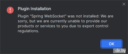 Plugin "Spring WebSocket" was not installed: We are sorry, but we are currently unable to provide our products or services to you due to export control regulations.