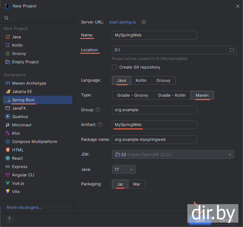 Шаг 1. Cоздаем новый проект с типом Spring Boot