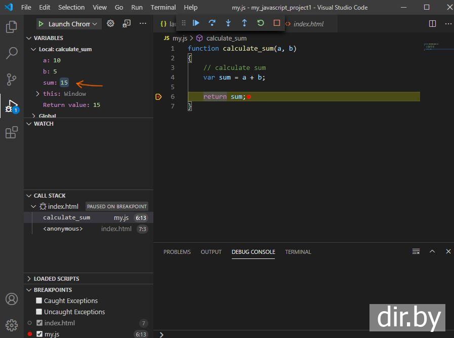 Create a new application JavaScript in Visual Studio Code. Debug the application. See in debugging how to perform JavaScript