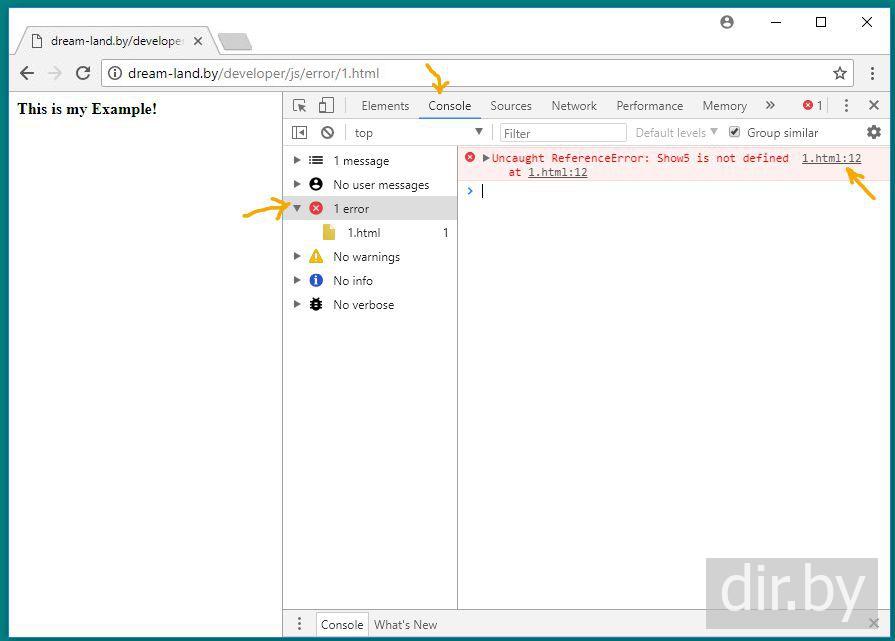Как узнать (увидеть) где ошибка при выполнении HTML, JavaScript в Google Chrome