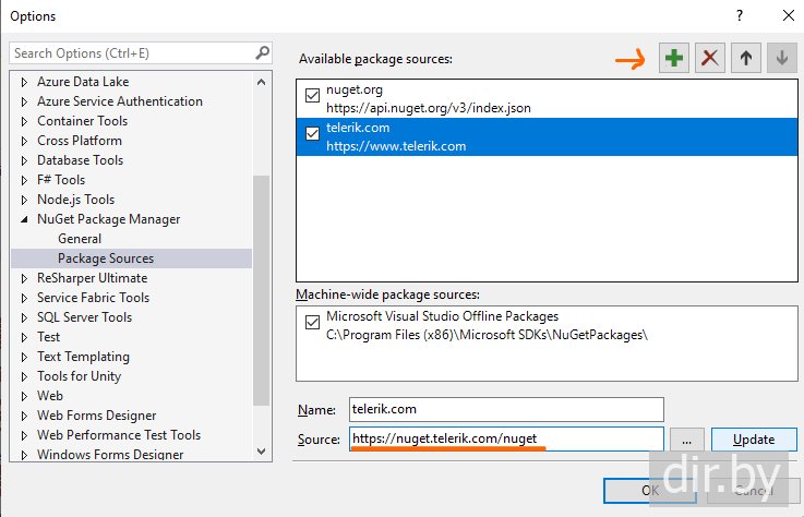 Устанавливаем package .nupkg файл (Telerik.UI.for.AspNet.Core.2018.3.911.nupkg) с компьютера в проект Visual Studio 2017