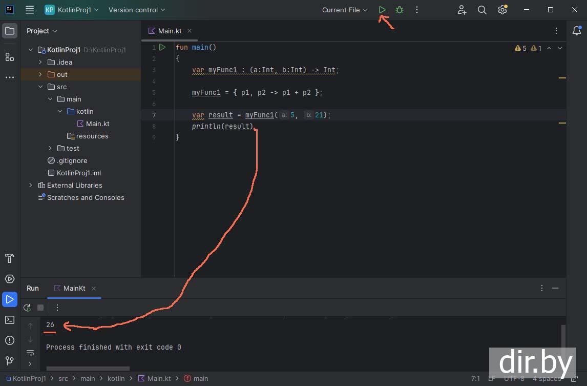 myFunc1 = { p1, p2 -> p1 + p2 };