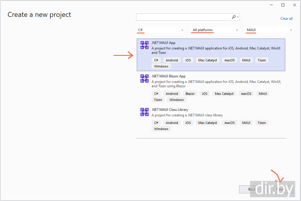 Creating a new Maui app on a Windows computer