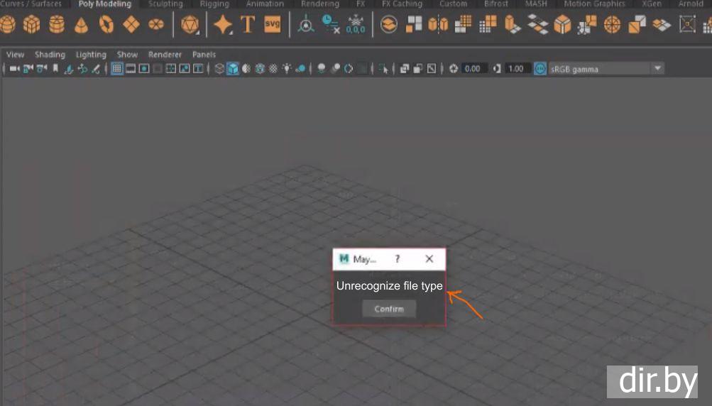 Появляется ошибка "Unrecogize file type", то есть Maya не может открыть stl file