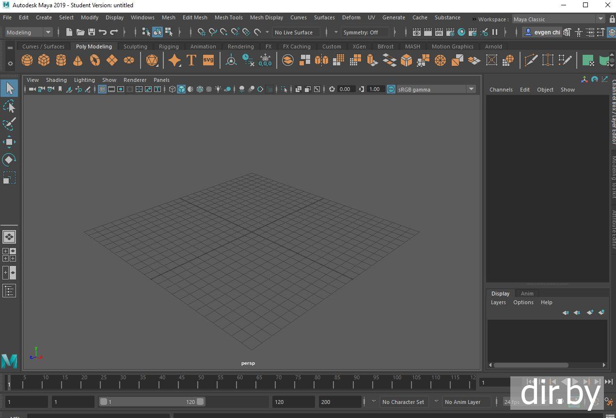 Нажимаем на иконку Maya в Windows и открывается Maya