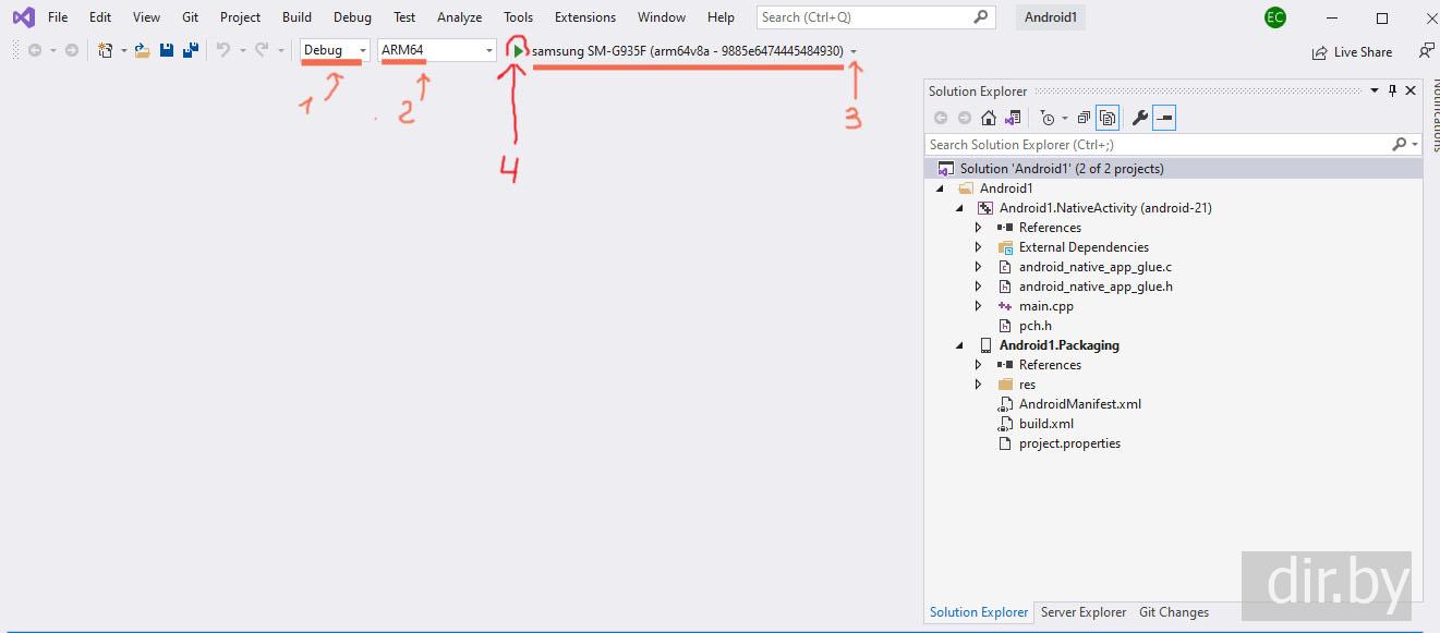 Создаем новое C++ приложение на компьютере (Windows) в режиме эмулятора Android