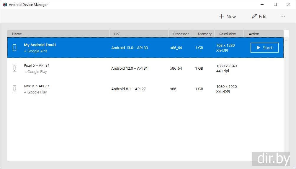 Создаем новое Android виртуальное устройство