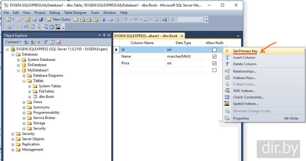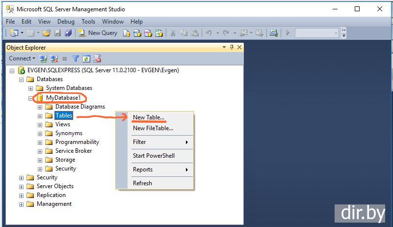Создание таблицы в SQL Server Management Studio