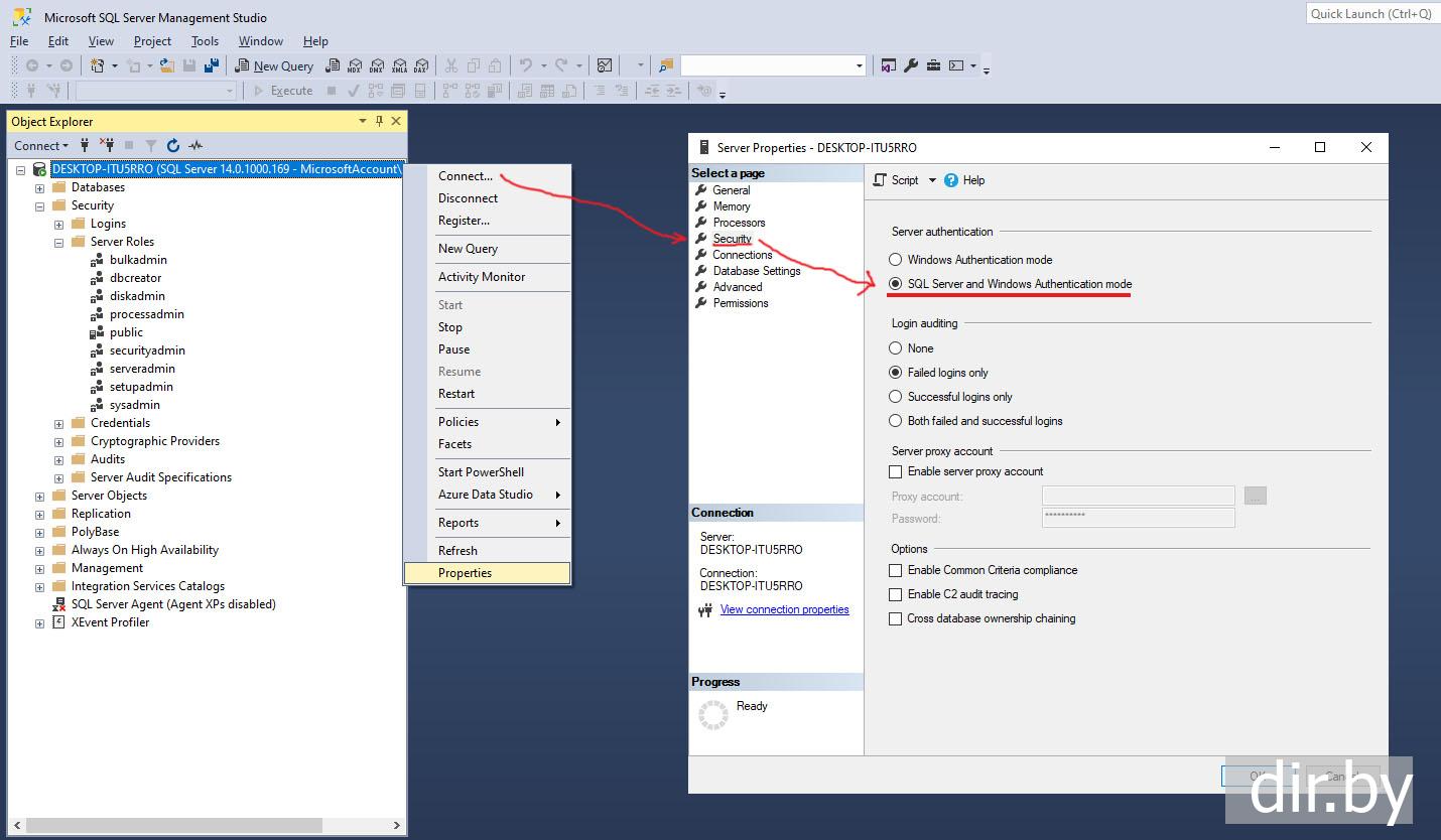 Добавляем права на создание базы данных в Microsoft SQL Server Management Studio