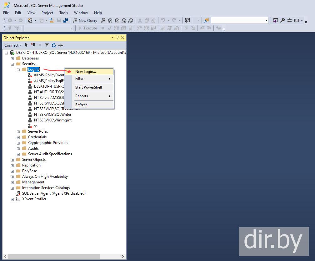 Создание базы данных в SQL Server Management Studio