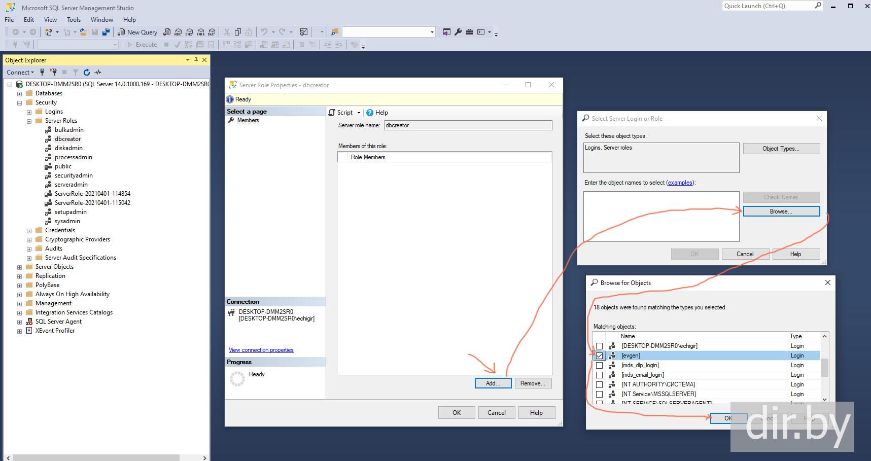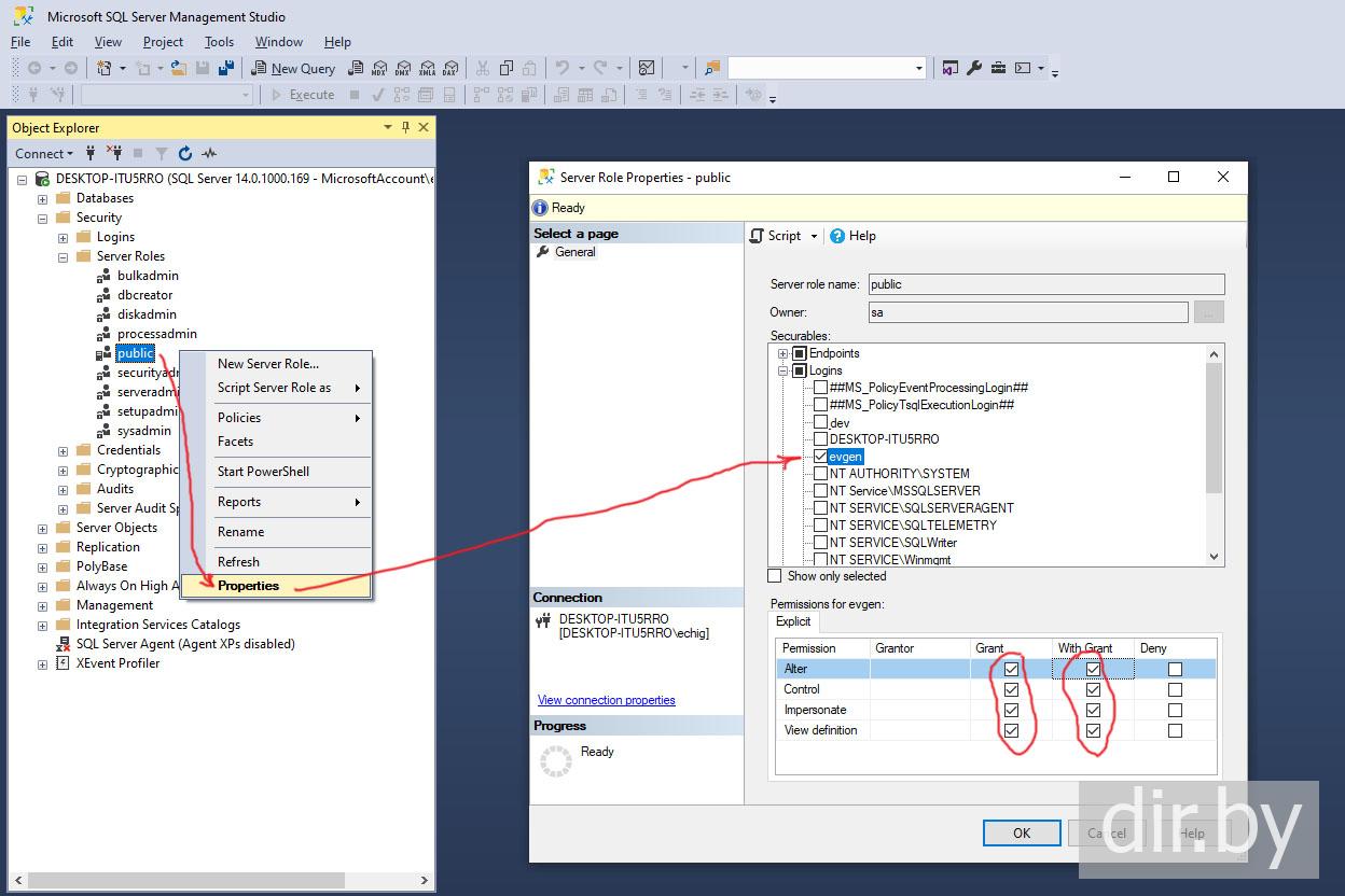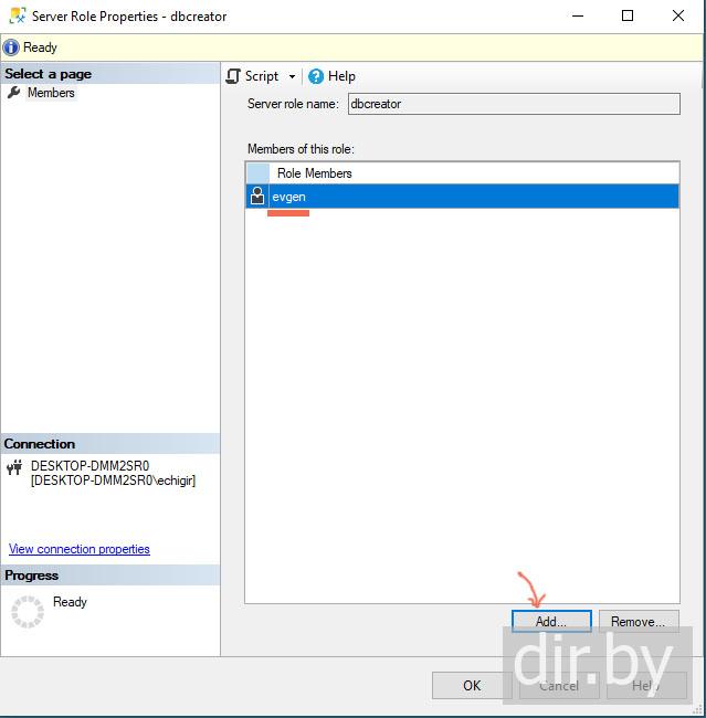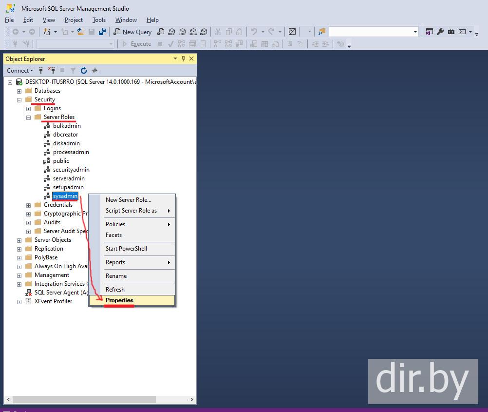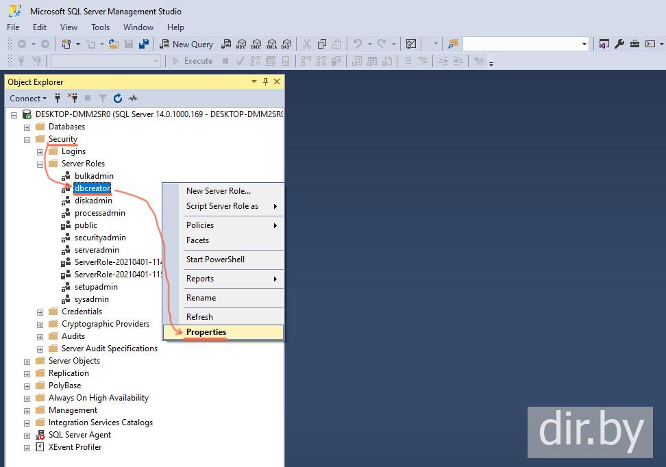 Add database creation permissions to Microsoft SQL Server Management Studio
