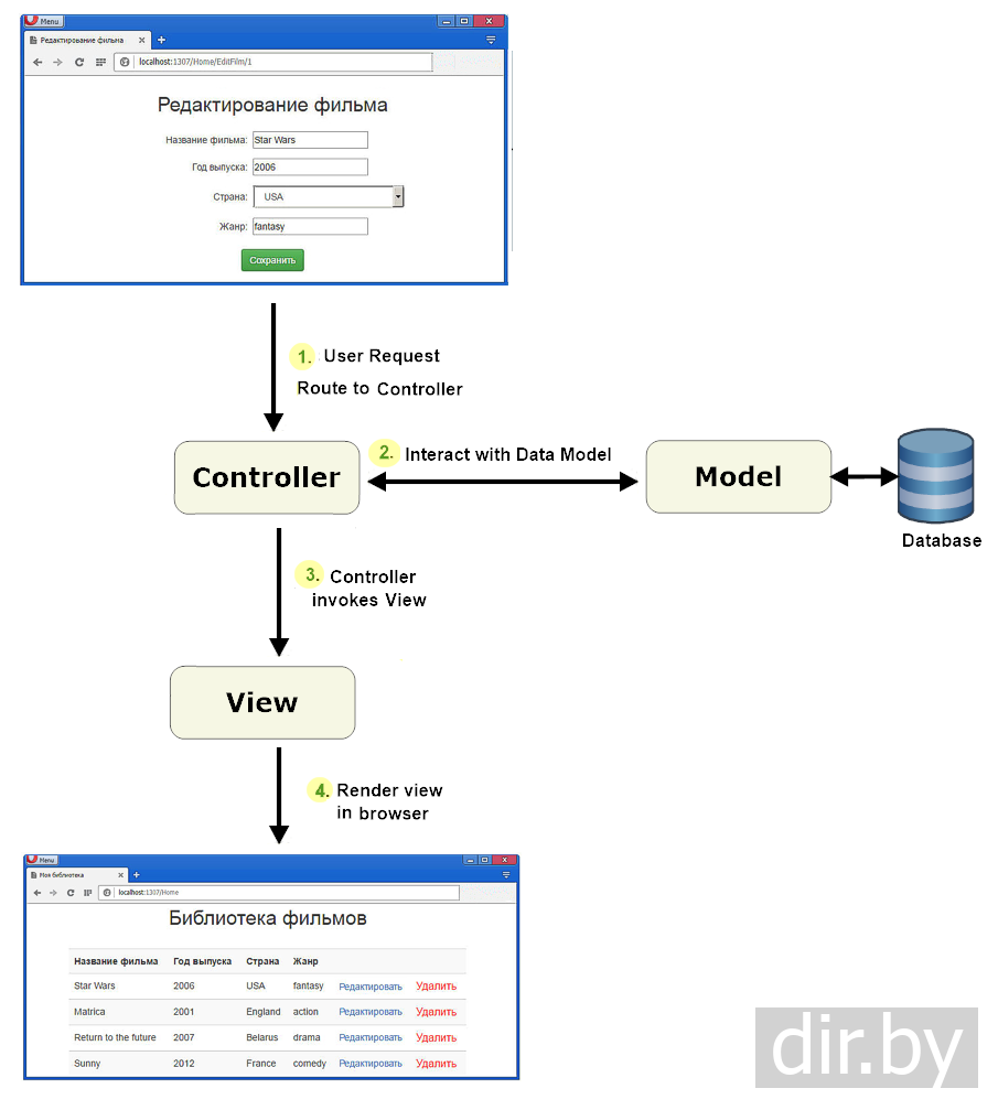 Controller обеспечивает связь между: