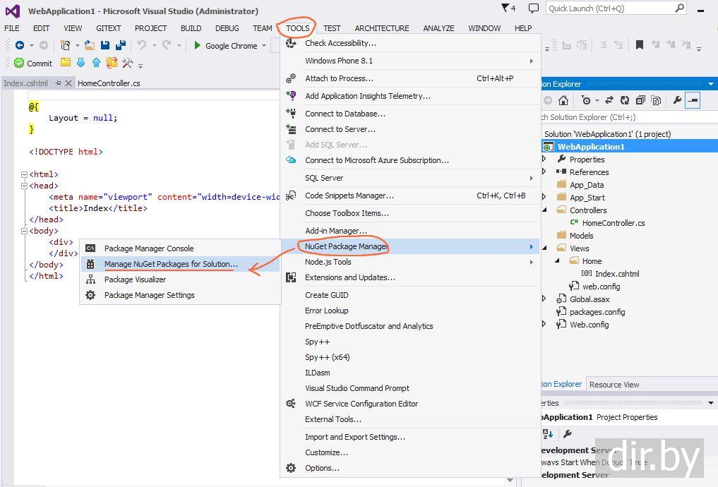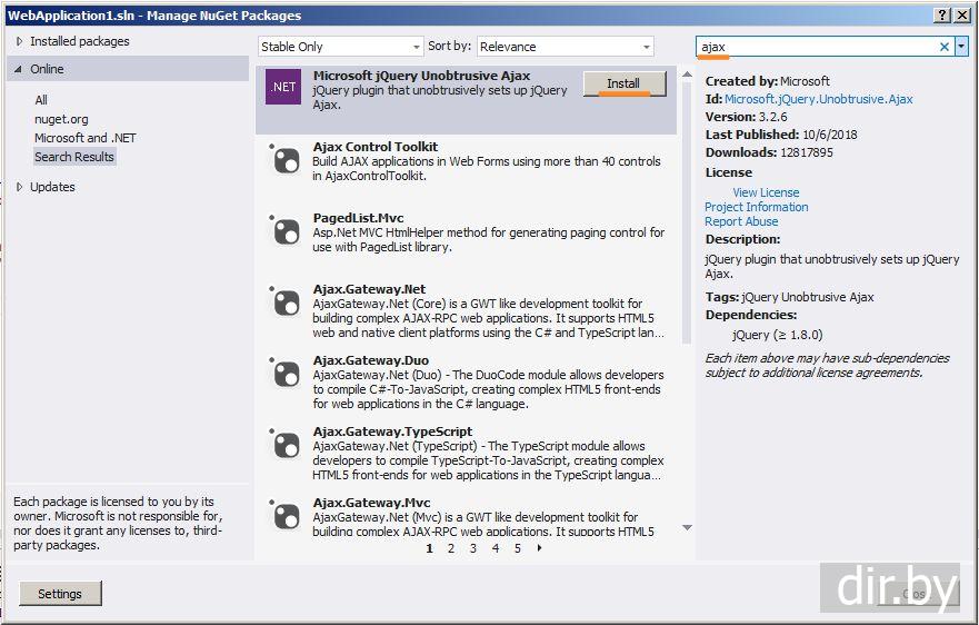 Шаг 2. Скачиваем jQuery и AJAX файлы с помощью NuGet утилиты в Visual Studio