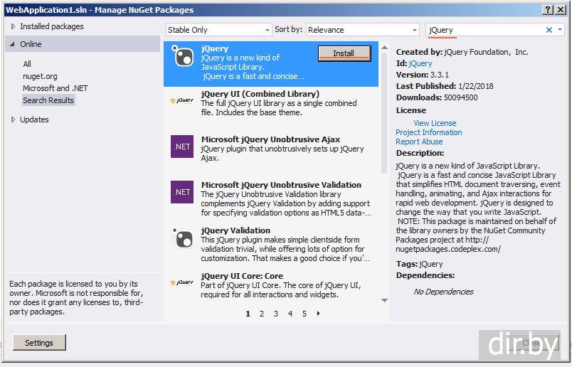 NuGet скачивает JQuery файлы c интернета и добавляет в текущий проект Microsoft Visual Studio.