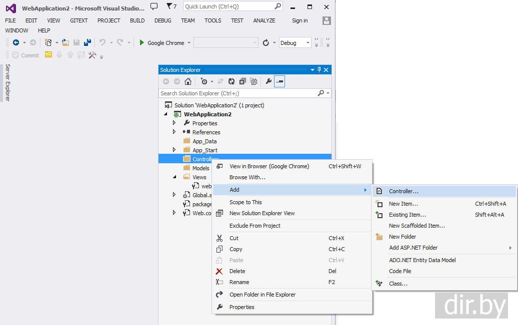Нажимаем в меню: File → New → Project → Visual C# → ASP.NET Web Application