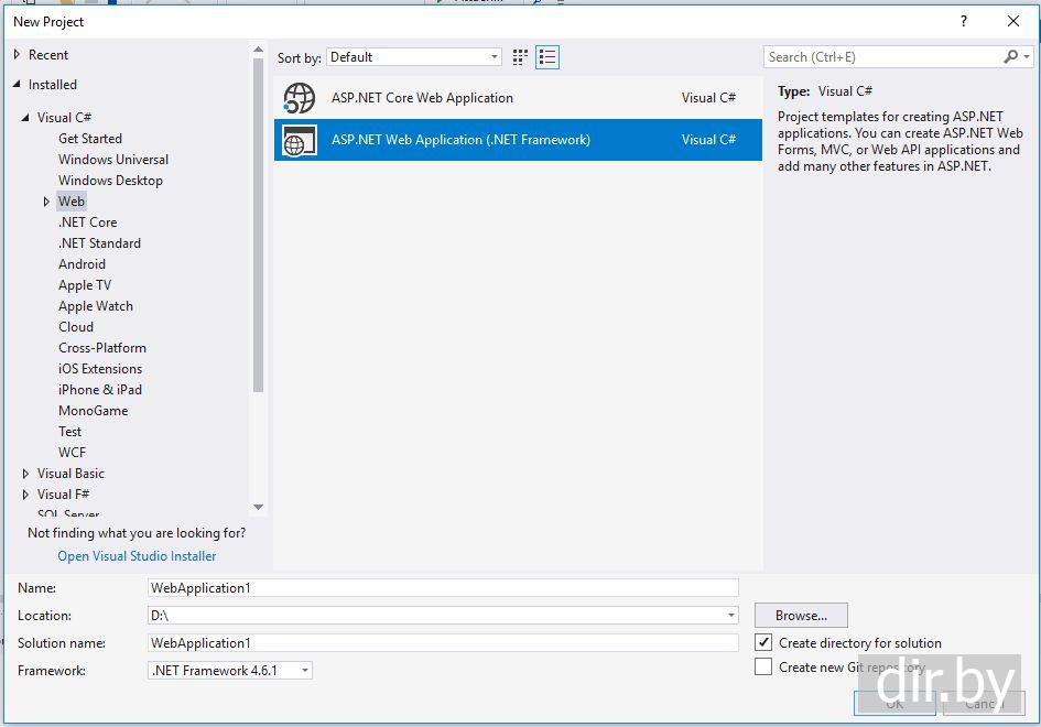 Шаг 1. Создаем новый ASP.NET MVC проект в Visual Studio 2017