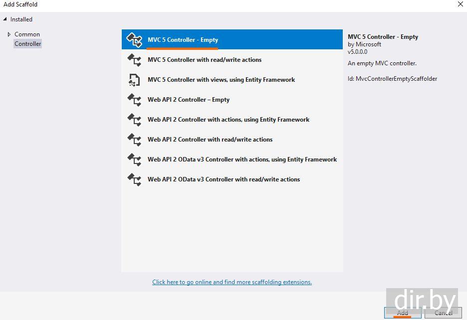 Чтобы добавить контроллер в наш проект в окне Solution Explorer нажимаем правой клавишей мыши на