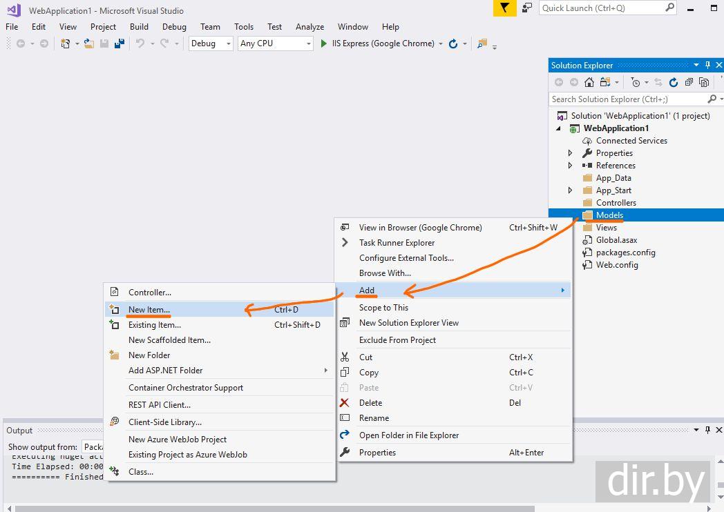 Нажмем правой клавишей мыши на папку "Models" → Add → New Item