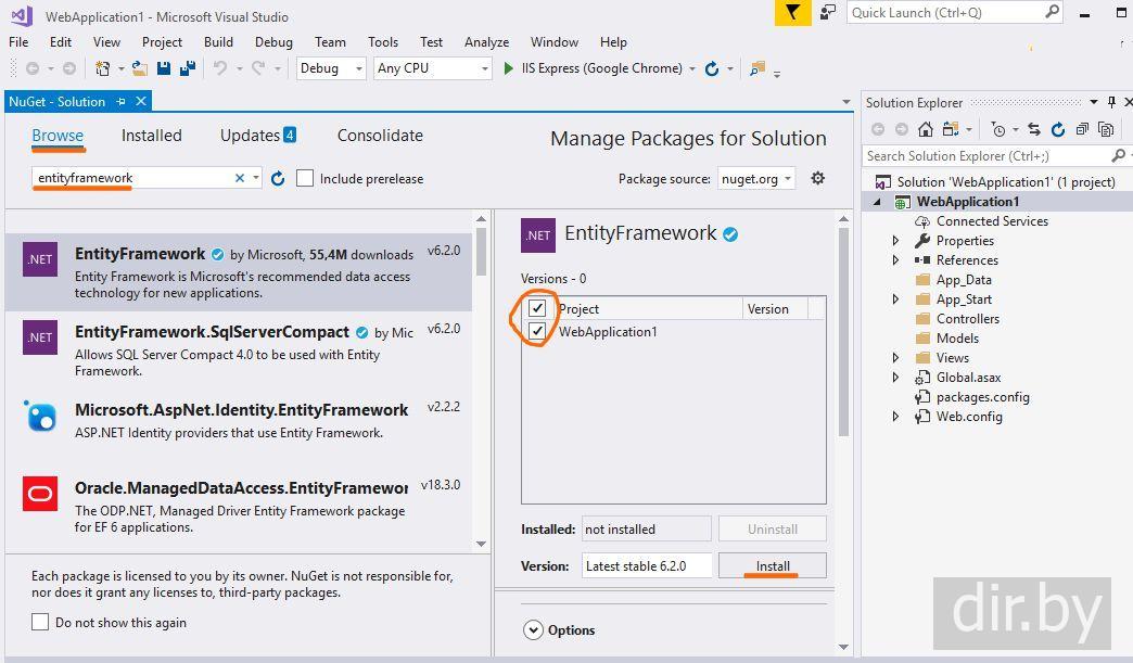 Шаг 3. Добавляем библиотеку Entity Framework используя NuGet