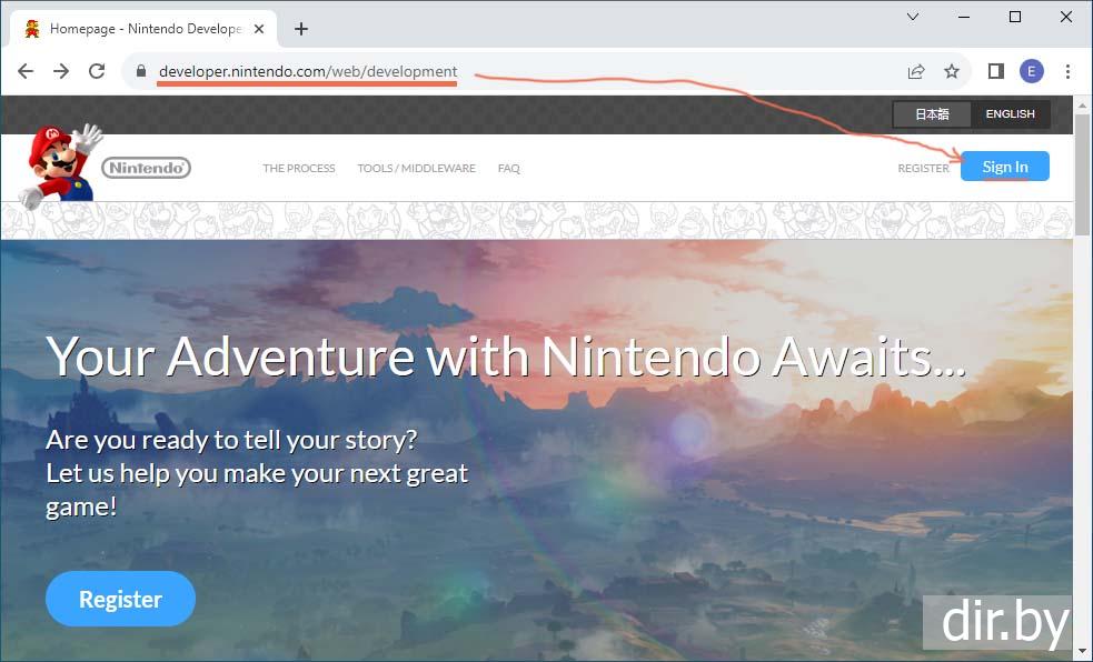 Регестрируемся как разработчик на сайте Nintendo Switch