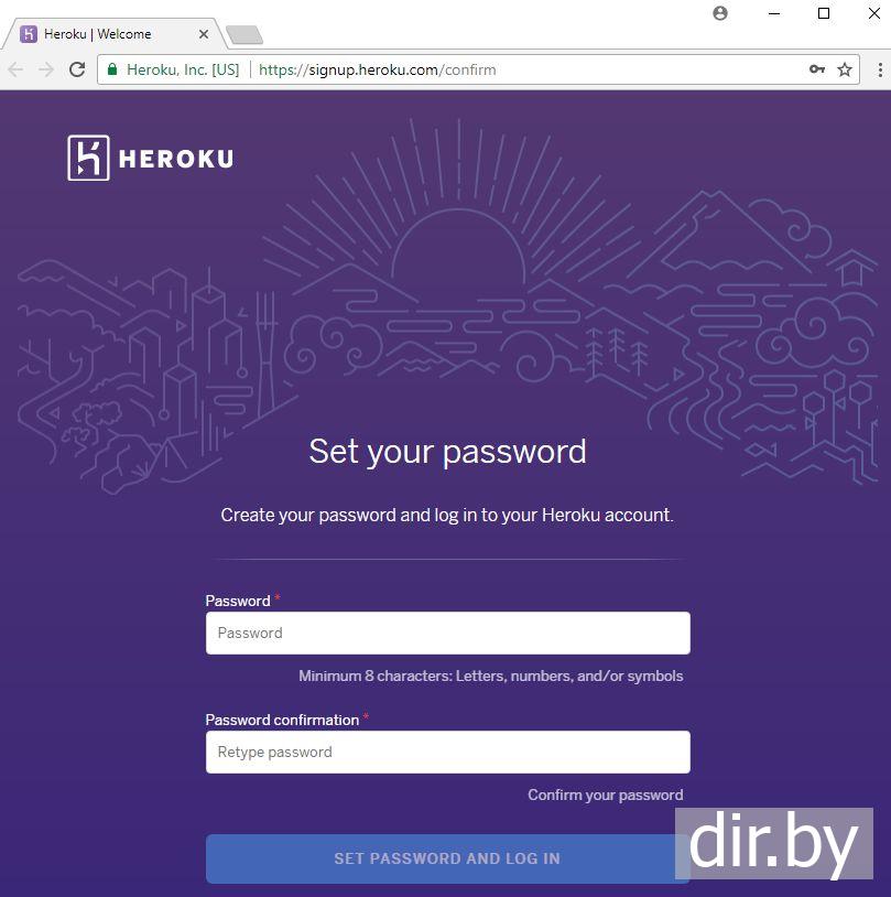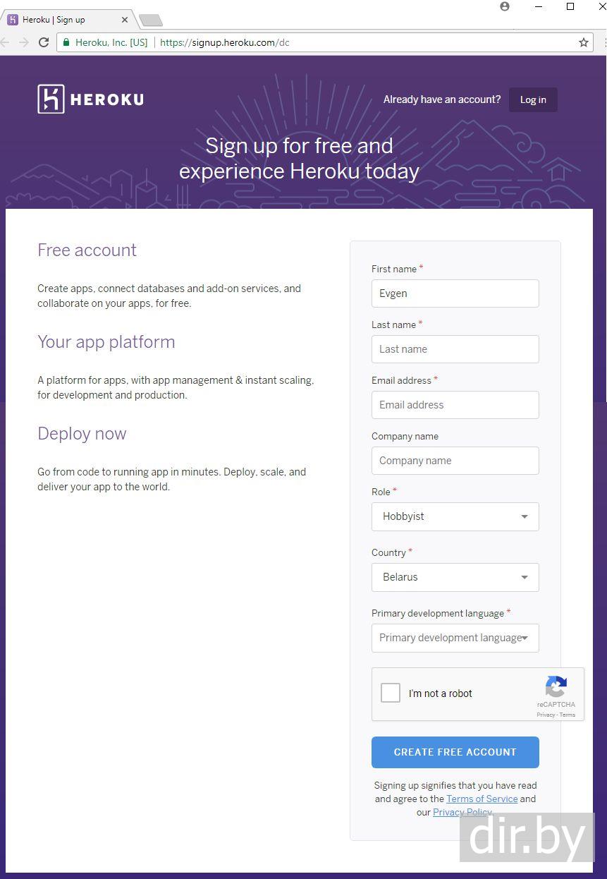 Регистрация на сайте Heroku.com
