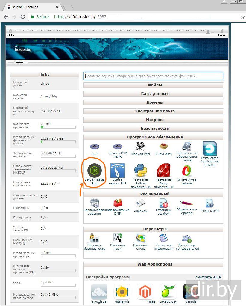 Хостинг и установка Node.js на вашем сайте. Настройка Node.js в cPanel