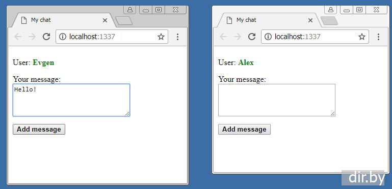 Chat (пользователь пишет сообщение и у других появляется сообщение) используя socket.io в Node.js (проект в Visual Studio)