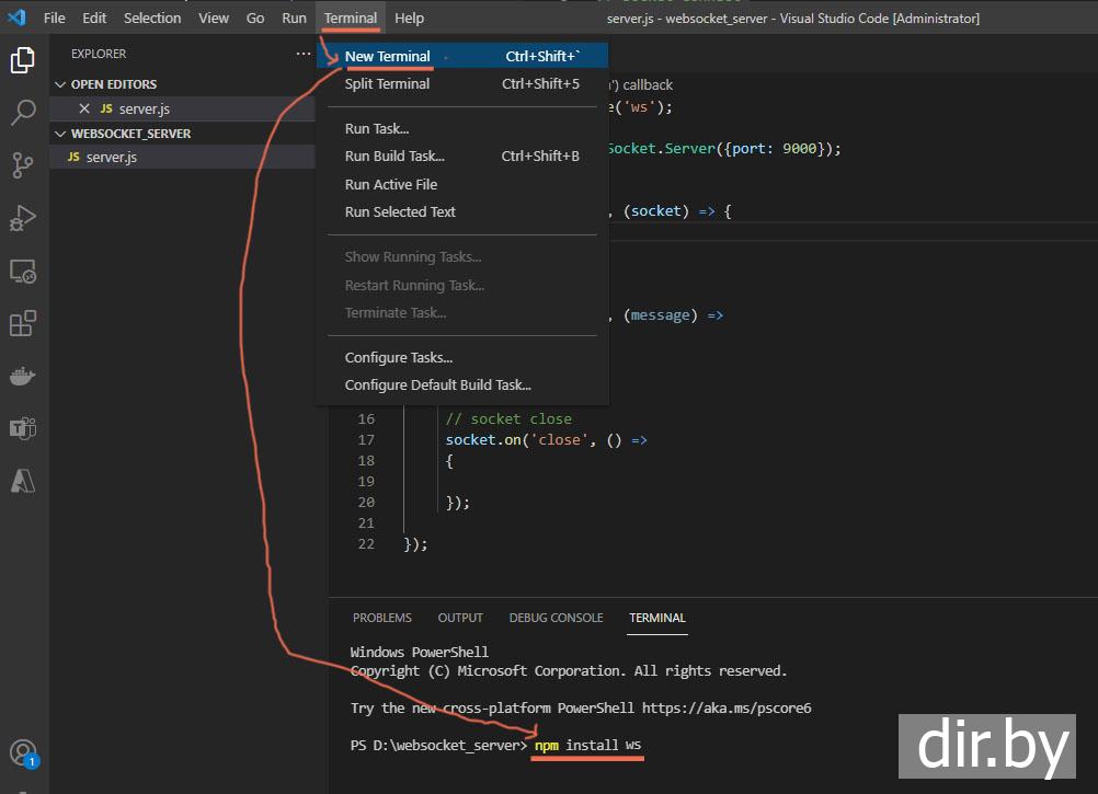 Создаем новый Node.js проект с websocket (проект создаем в Visual Studio Code) | client & server