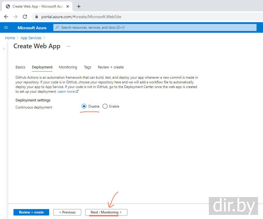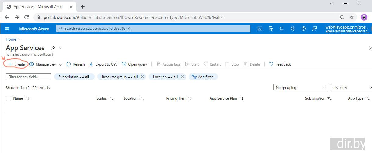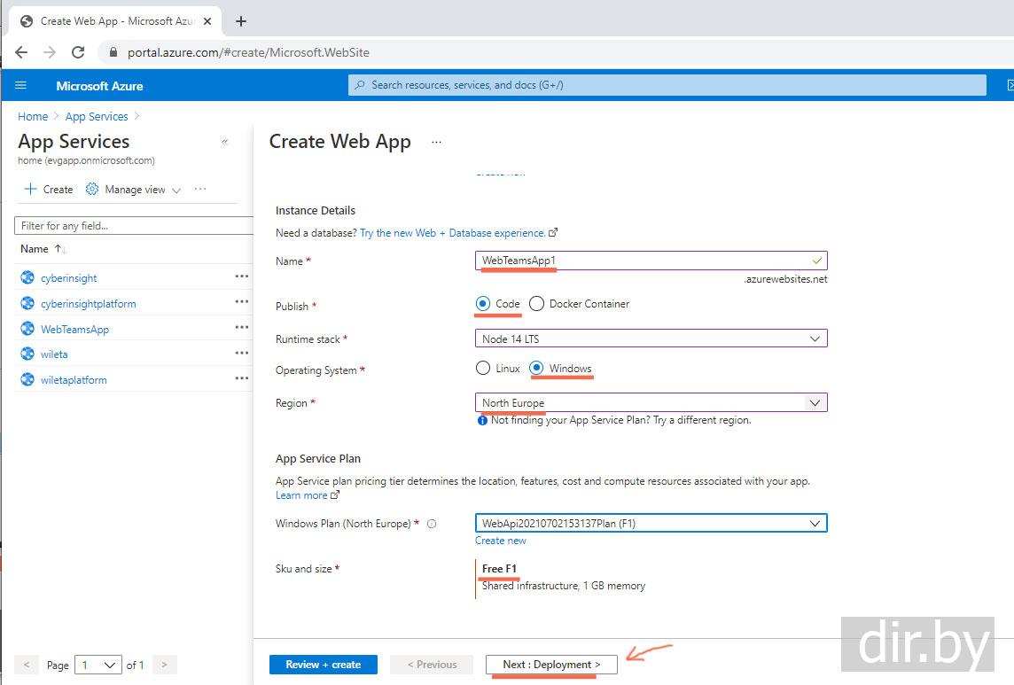 Создаем Azure Web Service для React Teams web application. То есть создаем пустой web server