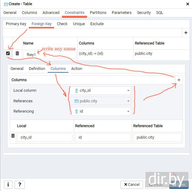 Создаем таблицу "person" и связываем с таблицей "city" (используем pgAdmin, сервер PostgreSQL)