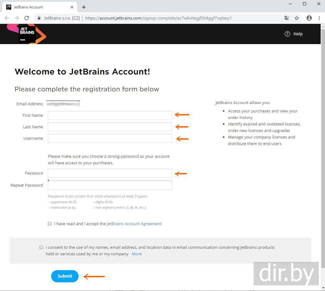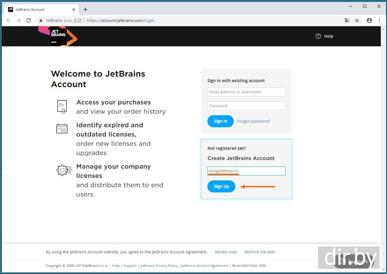 Регистрируемся в JetBrains
