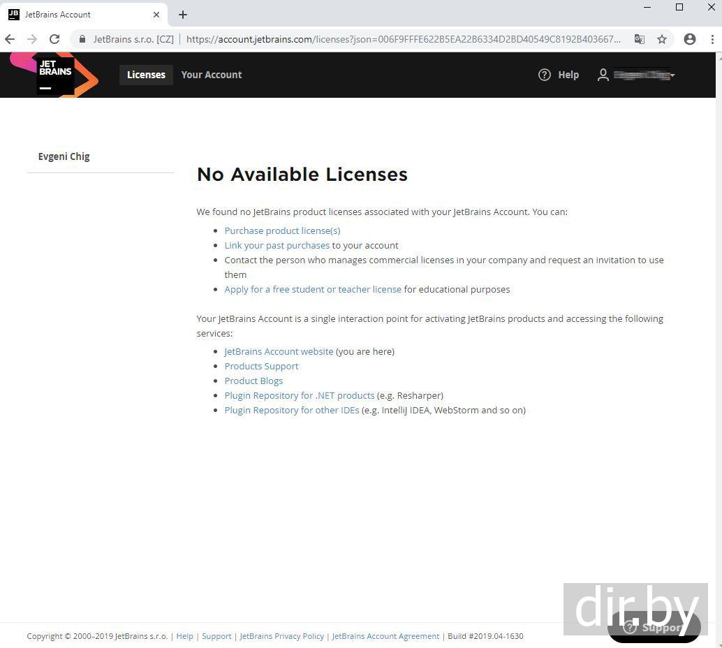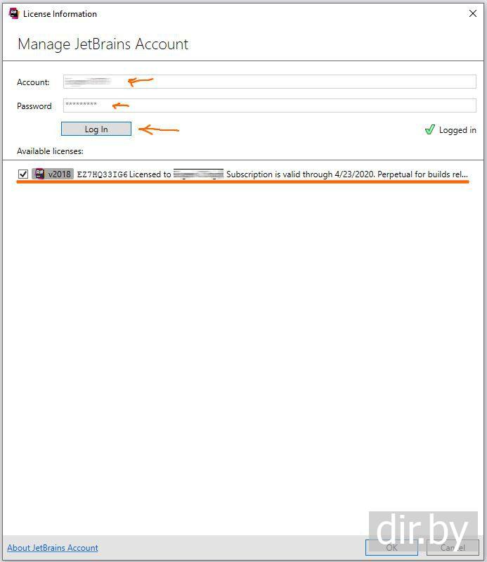 Вводим JetBrains логин и пароль