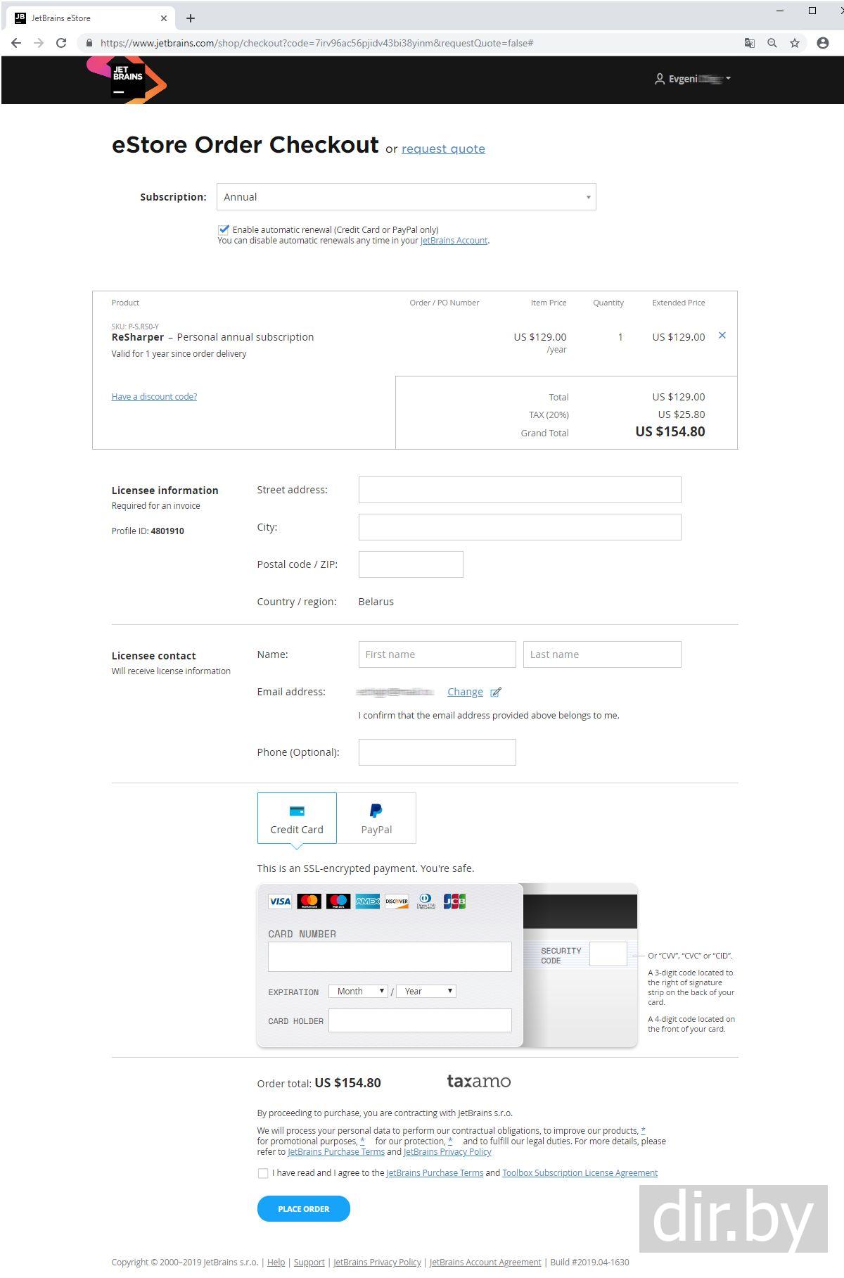 Открываем ссылку "Confirm your account" с письма и заполняем форму для оплаты