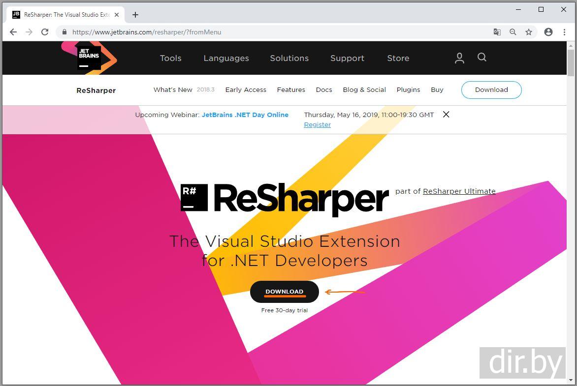Открываем в браузере https://jetbrains.com и будем скачивать ReSharper