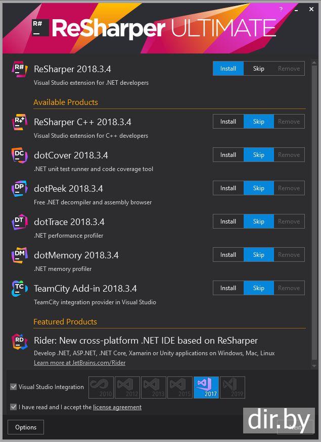 Запускаем скаченный JetBrains.ReSharperUltimate.2018.3.4.exe